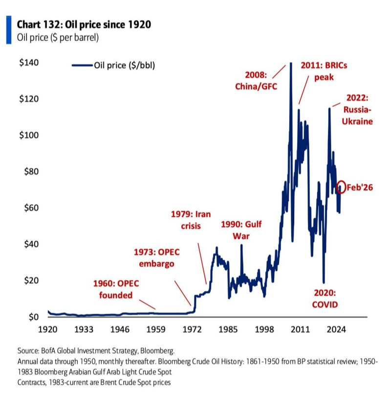 U.S./Israel strike on Iran took place that has markets teeming with anxiety. I hate to be the one to say, "We've been here before," but we indeed have been here before. Different geopolitical shocks have affected the price of oil many times since 1920. Each time is a little different - some shocks are short-term in nature, while others are longer lasting. When the Iran Crisis occurred in 1979, upward pressure on oil prices lasted for multiple years. However, in 1990, when Iraq invaded Kuwait, oil prices increased more than 30% in just two months, but by January of 1991,