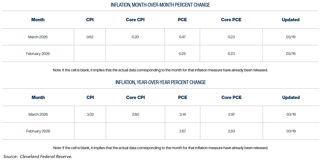 So far, in early futures trading this morning, equity markets are up more than 2%, while oil prices have plummeted and precious metals have pared losses. Last week, as widely expected, the Fed left rates as is, but what was more anticipated was Powell's press conference and the updated economic projections. The Fed's Dot-plot remained unchanged from the previous meeting - i.e., one rate cut in '26 and one cut in '27. However, markets are now forecasting no rate cuts in '26. That would likely depend upon how quickly the conflict in Iran could come to a conclusion. In addition, the Fed changed their inflation projections from the previous meeting bumping up PCE from 2.4% in 2026 to 2.7%.